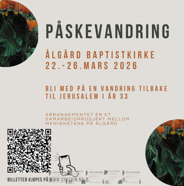 Velkommen til påskevandring 22.-26. mars i Ålgård Baptistkirke.